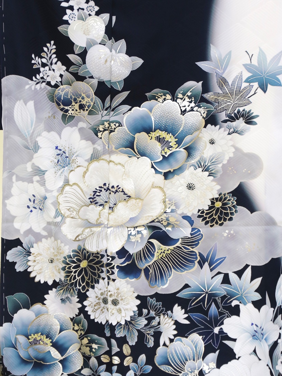 | 品名 | 濃紺と白地染め分け四季花々 |