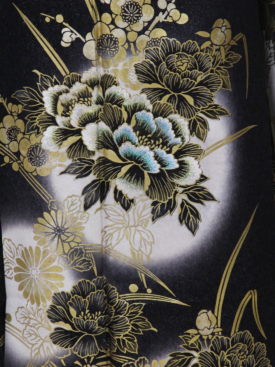 | 品名 | 黒地黒花と金彩の白丸ぼかし |